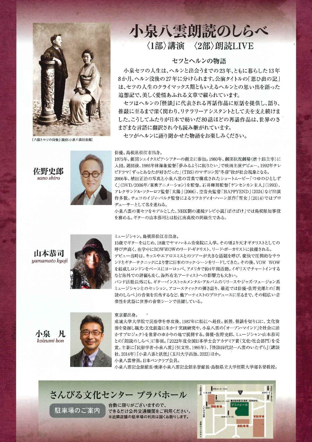 【問合せ】 小泉八雲朗読のしらべ実行委員会事務局(松江市文化振興課内)