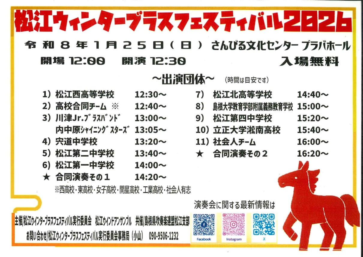 【問合せ】松江ウインターブラスフェスティバル実行委員会事務局(小山) ℡ 090-9506-1232