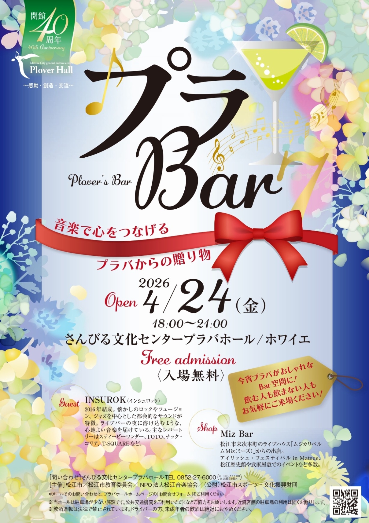 さんびる文化センタープラバホール TEL 0852-27-6000 ※火曜日を除く