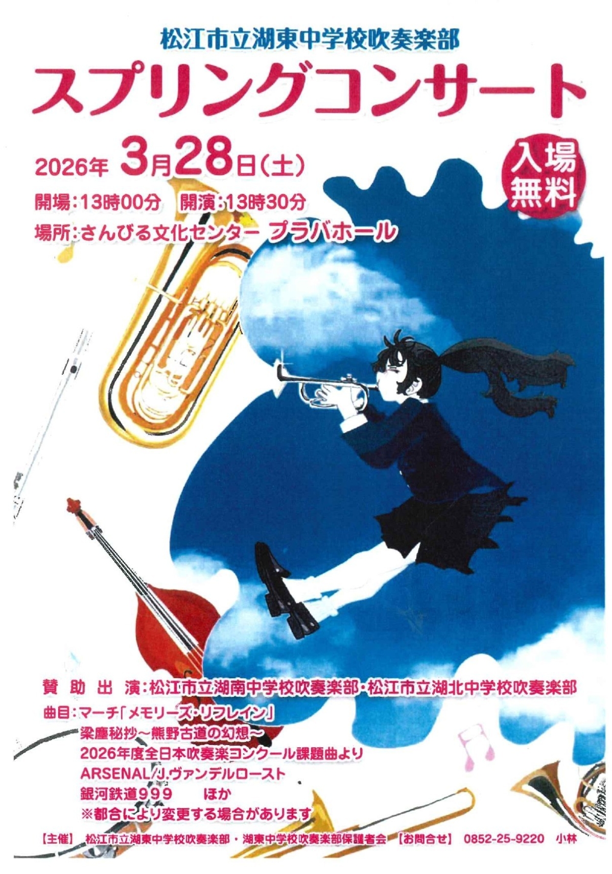 【主 催】松江市立湖東中学校吹奏楽部・湖東中学校吹奏楽部保護者会